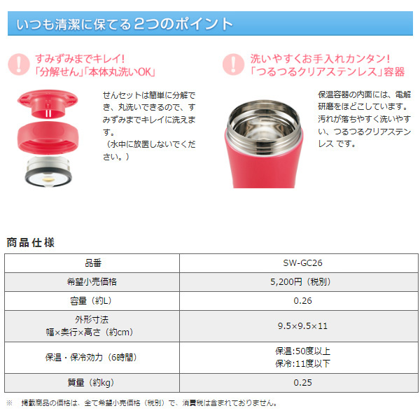 TOPキッチン キッチン雑貨 送料無料 象印 ステンレスフードジャー スープジャー 0.26L レシピ付き SW-GC26-TA ナッツブラウン 価格: ¥3,157 (税込) [ポイント還元 31ポイント~] 販売期間: 数量: 個 在庫: × 在庫 × 返品についての詳細はこちら レビューはありません 食べやすく、洗いやすいフード保温・保冷用ジャー!